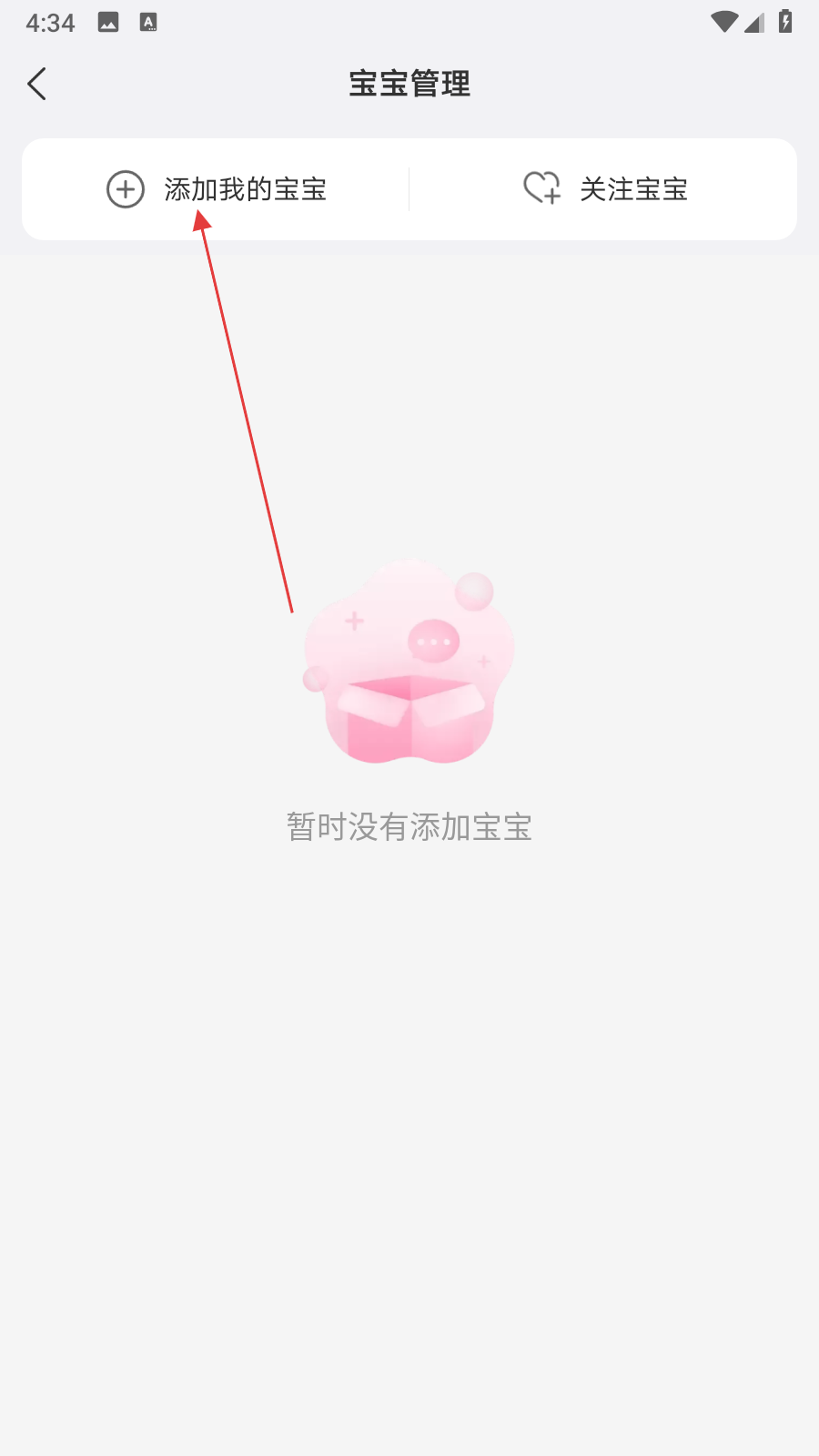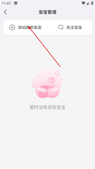 3、在寶寶管理界面,點(diǎn)擊添加我的寶寶,進(jìn)入添加寶寶信息頁面。