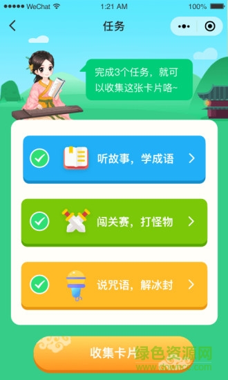 3.收集卡片,每完成一個任務(wù)就能獲得一張卡片