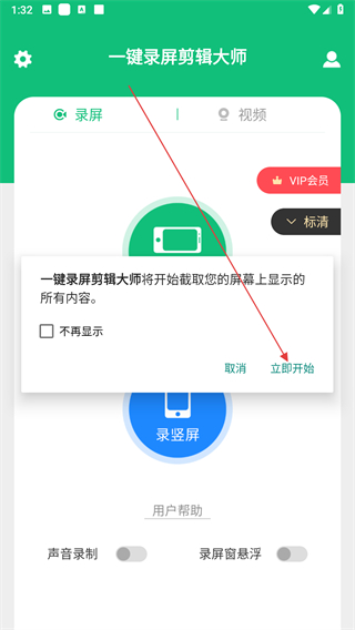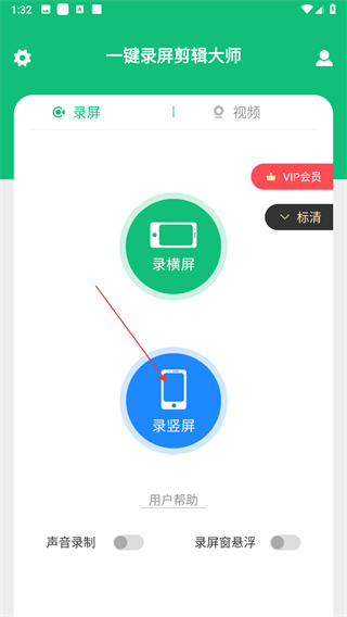 1、打開一鍵錄屏剪輯大師,在主界面選擇錄豎屏按鈕。