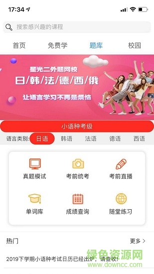 同時網(wǎng)校無償提供考級單詞記憶庫,不用再隨身攜帶紅寶書,并提供各語種考試模擬題及歷年考試真題在線測試,在各語種考試前,還會推出考前全國在線模擬考試??梢运阉飨螺d星光二外網(wǎng)校APP使用。