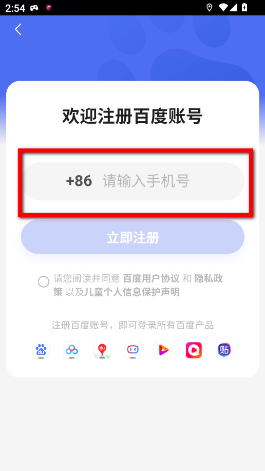 3、在歡迎注冊(cè)百度賬號(hào)界面,在輸入框中輸入手機(jī)號(hào)。