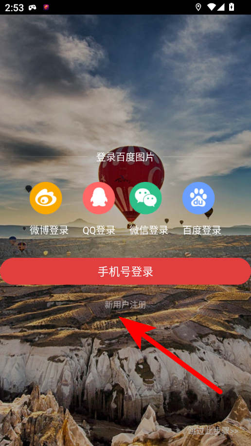 2、在登錄百度圖片界面,點(diǎn)擊新用戶注冊(cè)選項(xiàng)。