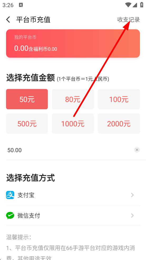 3、進入收支記錄頁面后,可查看收入和支出的相關記錄,了解具體的充值情況。