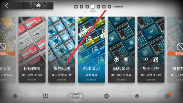 1、可以點擊貨物運送選項,進入相關資源關卡頁面查看關卡。