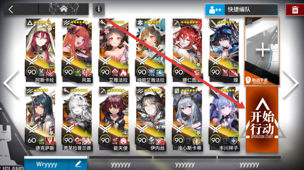 3、在進入到隊伍編輯頁面中,編輯好后可以點擊開始行動按鈕,進入關卡。