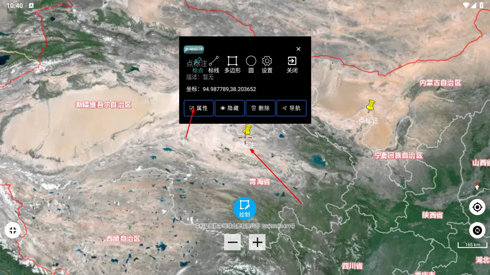 3、在標注信息框中,點擊“屬性”按鈕,可對標注的描述、坐標等屬性進行查看或編輯,完善標注內容。