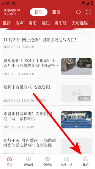 1、打開(kāi)今日資陽(yáng)app,點(diǎn)擊底部我的按鈕,進(jìn)入個(gè)人的頁(yè)面。