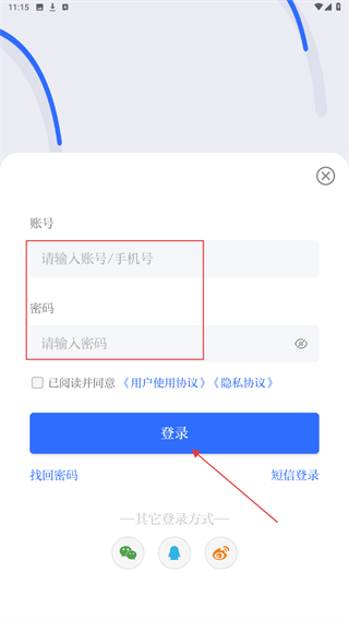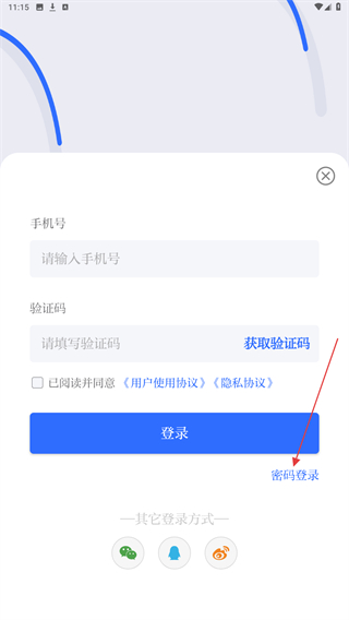 3、進(jìn)入登錄的頁(yè)面內(nèi),點(diǎn)擊右側(cè)密碼登錄的按鈕。