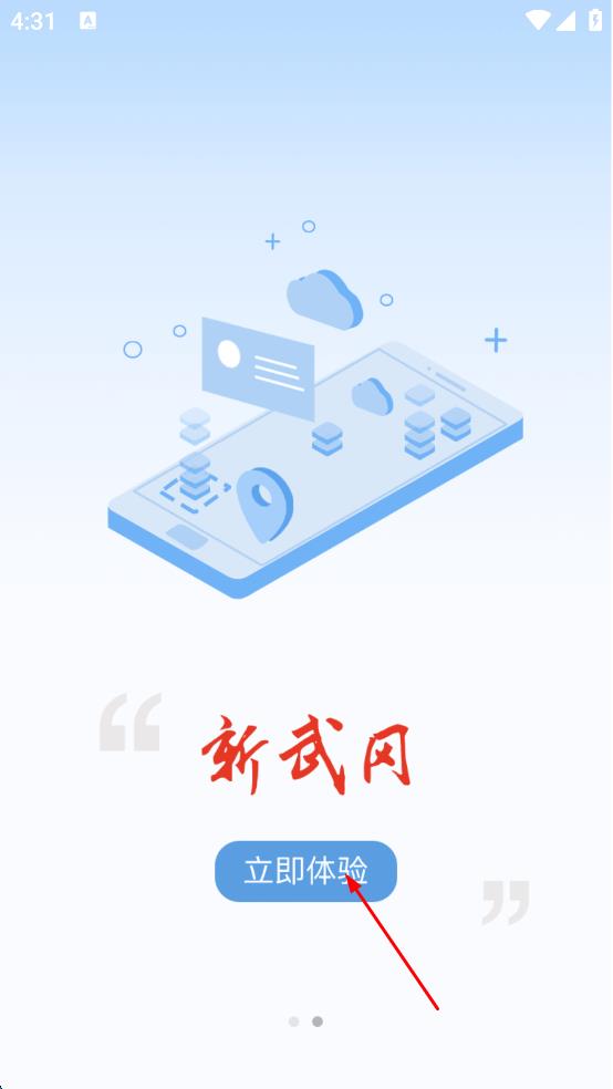2、在APP體驗(yàn)界面,點(diǎn)擊“立即體驗(yàn)”按鈕,進(jìn)入新武岡APP主界面。