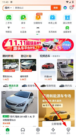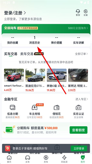 1、打開瓜子二手車APP,點擊底部導(dǎo)航欄的我的,進入個人頁面。