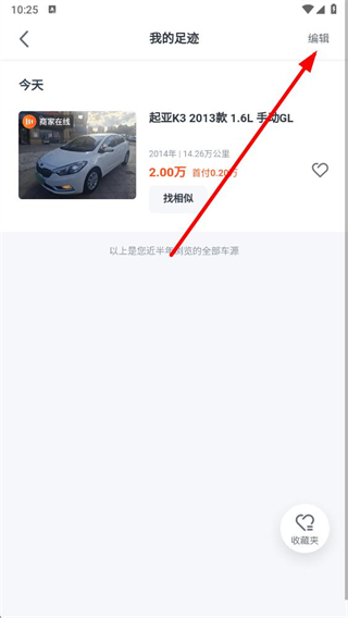 3、在我的足跡頁面,點擊右上角編輯選項。