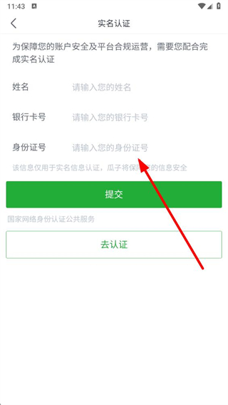 4、在實名認證頁面,依次輸入個人信息,按提示完成實名認證操作。