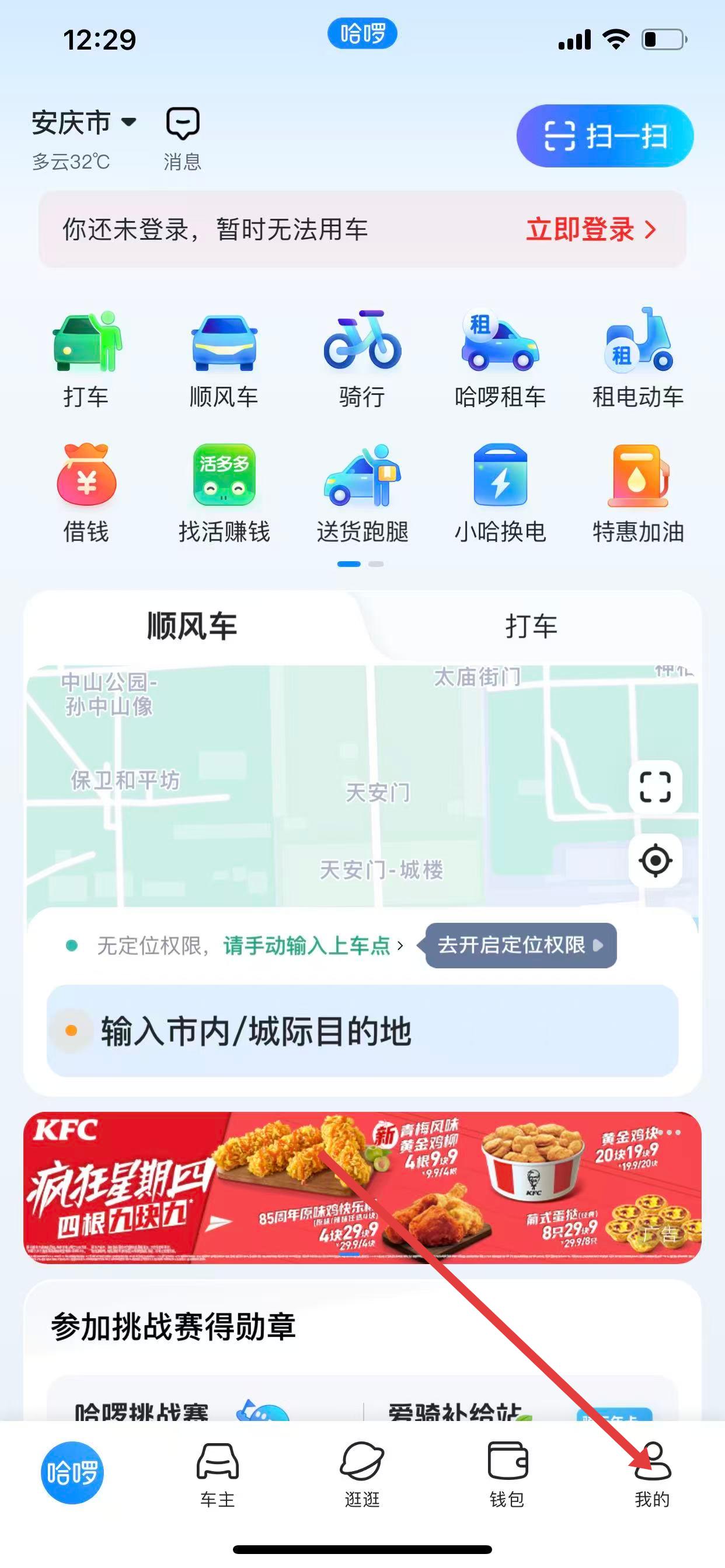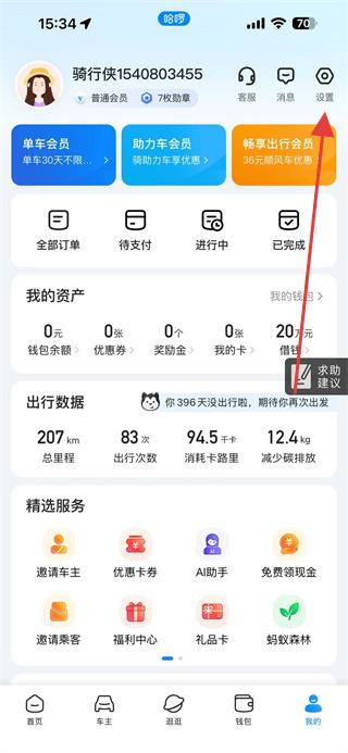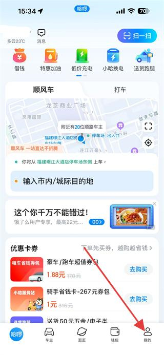 1、打開(kāi)哈啰APP,進(jìn)入主界面后,點(diǎn)擊屏幕右下角我的圖標(biāo),進(jìn)入個(gè)人中心頁(yè)面。