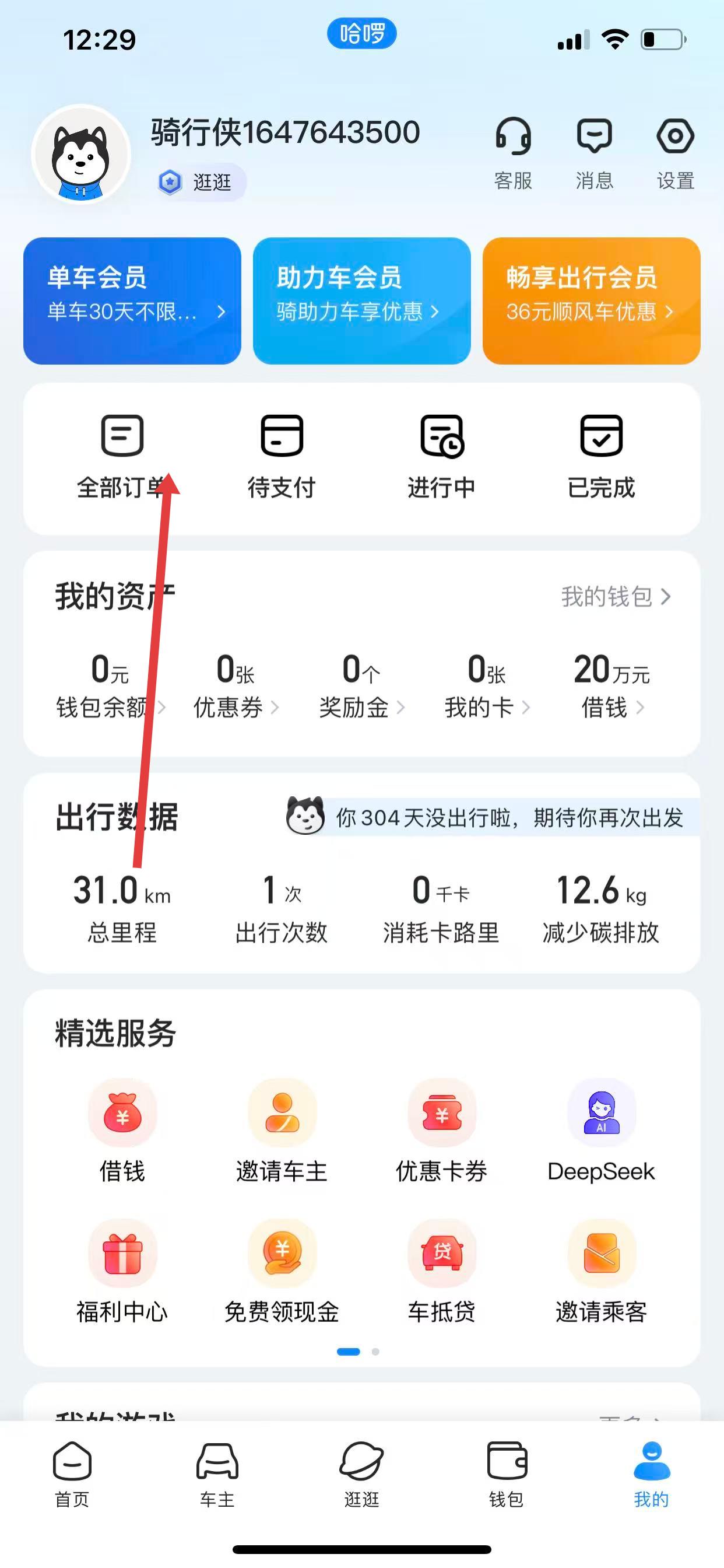 1、打開(kāi)哈啰APP,點(diǎn)擊右下角我的,進(jìn)入個(gè)人頁(yè)面。