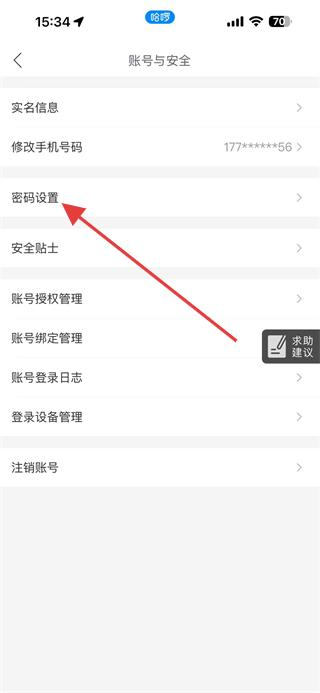 4、在賬號(hào)與安全頁(yè)面點(diǎn)擊密碼設(shè)置,即可設(shè)置哈啰的登錄密碼。
