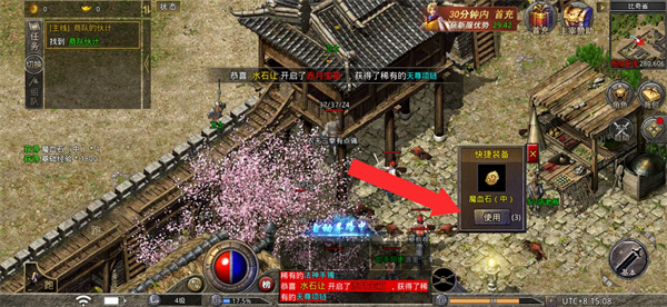 4、使用獲得的道具如魔血石,點擊使用可對裝備進行強化,提升裝備屬性,增強角色戰(zhàn)力,奠定基礎(chǔ)。
