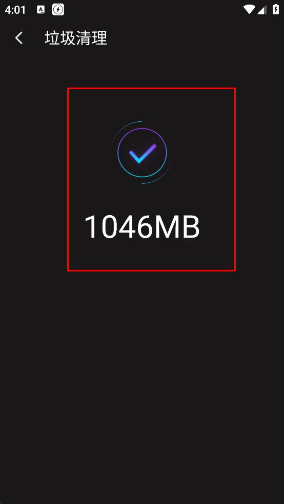 4、等待垃圾清理完成,頁面會顯示清理完成的提示,此次共清理1046MB垃圾,完成雷電清理APP的垃圾清理操作。