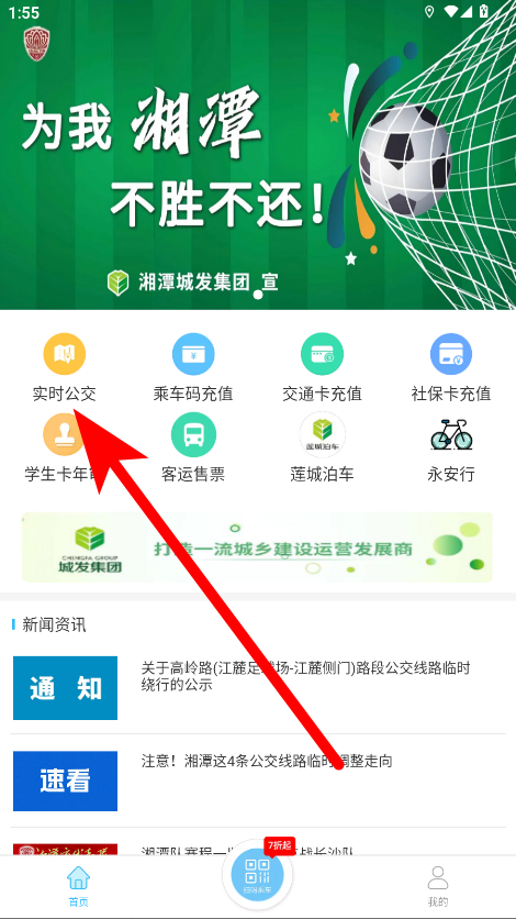 1、在相關(guān)APP首頁,點擊實時公交選項,進入公交查詢頁面。