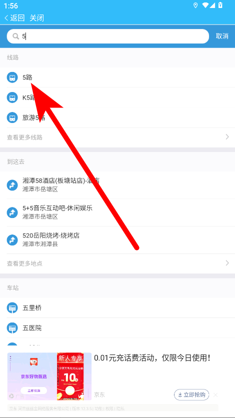 3、在搜索結(jié)果里,選擇對應(yīng)的公交線路,進入該線路詳情頁面。