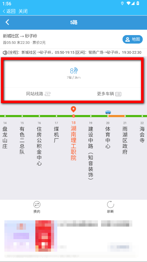 4、在線路詳情頁面,即可查看公交的實時位置、到站時間等信息。