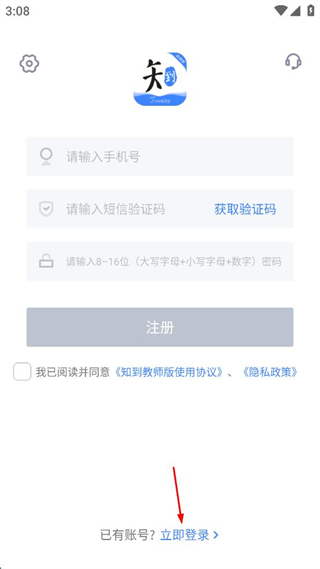 2、在注冊(cè)界面點(diǎn)擊已有賬號(hào)立即登錄選項(xiàng),進(jìn)入登錄界面。