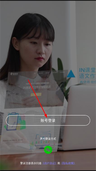 1、打開作文批改app,在首頁點(diǎn)擊賬號(hào)登錄按鈕。