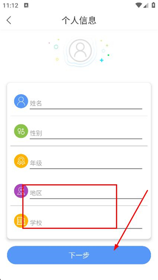 4、輸入地區(qū)和學(xué)校,點(diǎn)擊下一步,根據(jù)提示完成后續(xù)操作。