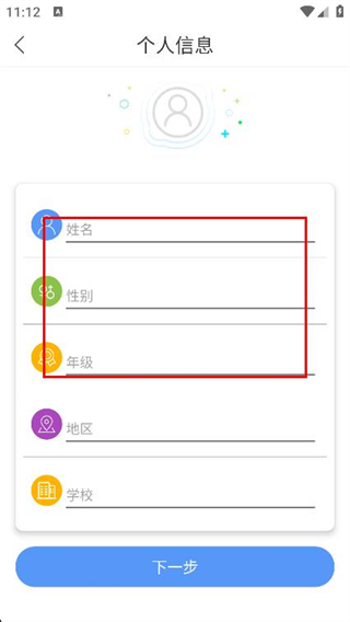 3、進(jìn)入注冊頁面,在輸入框內(nèi)填寫姓名,性別,年級(jí)。