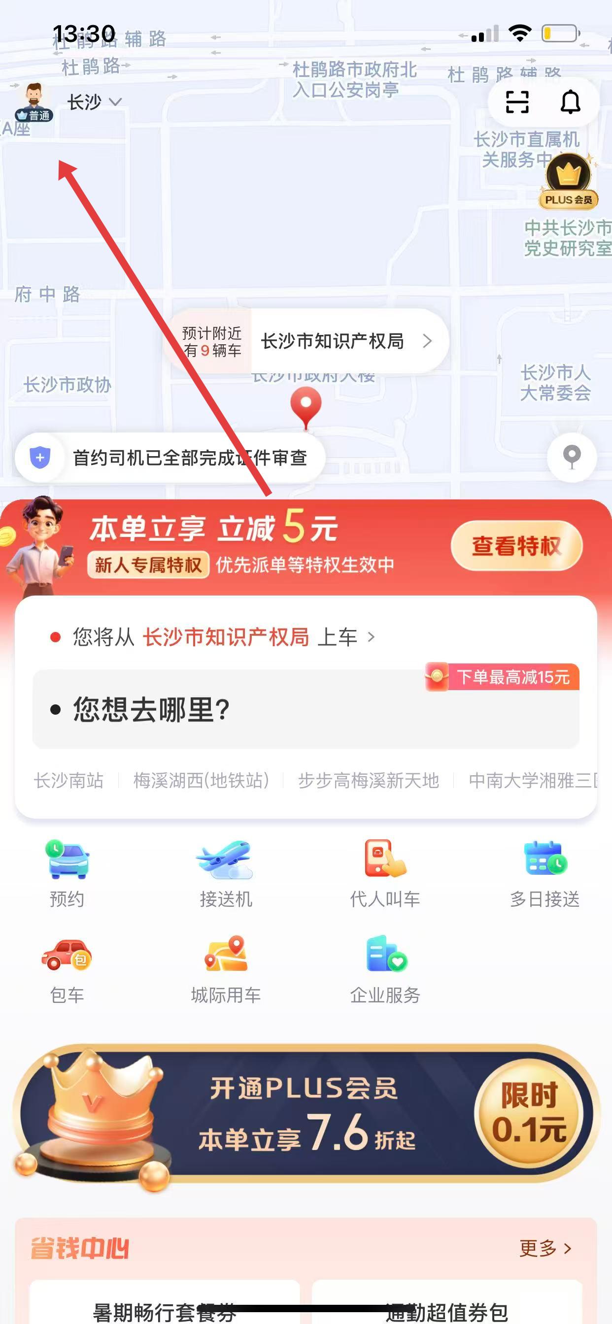 1、打開(kāi)首汽約車App,點(diǎn)擊左上角的個(gè)人頭像圖標(biāo),進(jìn)入個(gè)人中心頁(yè)面。