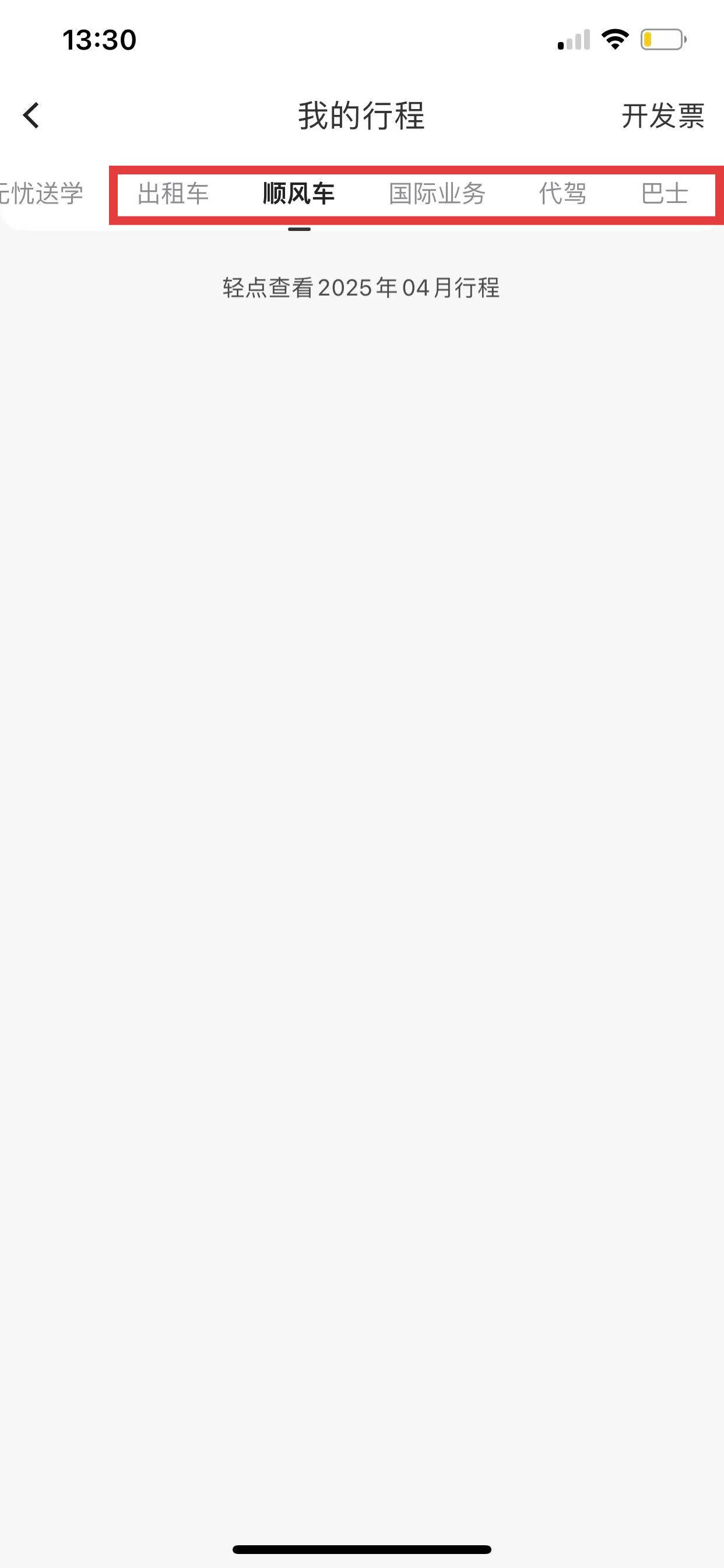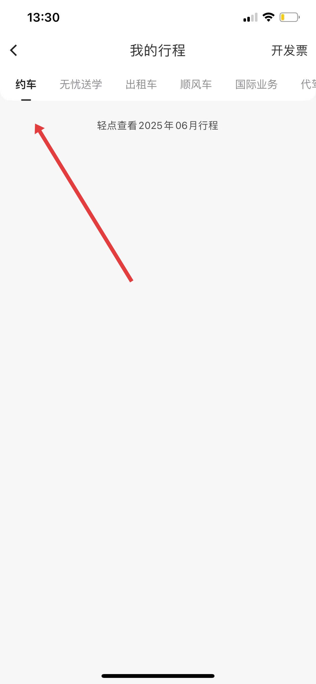 3、進(jìn)入我的行程頁(yè)面后,默認(rèn)顯示的是約車訂單記錄,在這里可以查看歷史的約車訂單。