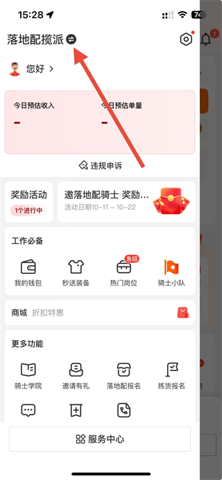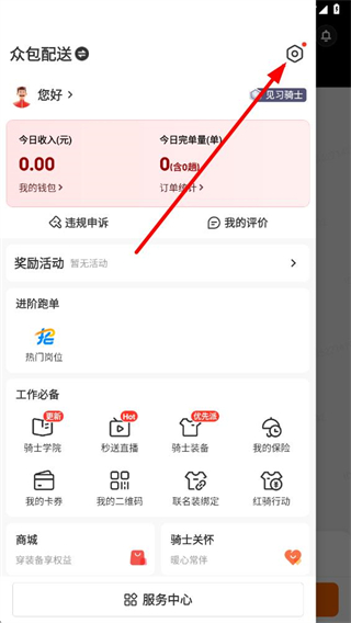 1、在京東秒送騎士app頁(yè)面點(diǎn)擊接單設(shè)置選項(xiàng),進(jìn)入接單設(shè)置頁(yè)面。