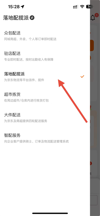 4、點(diǎn)擊選中的配送模式,即可完成切換。