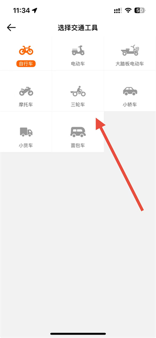 3、在選擇交通工具頁(yè)面選擇對(duì)應(yīng)的交通工具,即可完成配送工具設(shè)置。