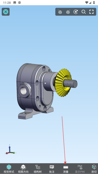 2、在圖紙查看界面,點(diǎn)擊底部工具欄中的測(cè)量按鈕,彈出測(cè)量功能選項(xiàng)欄。