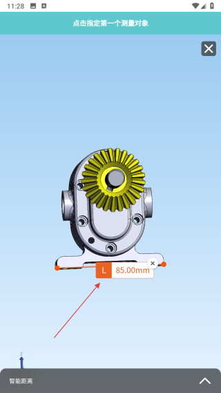 4、在圖紙上依次點(diǎn)擊測(cè)量的起點(diǎn)、終點(diǎn),即可在界面上查看測(cè)量出的尺寸結(jié)果。