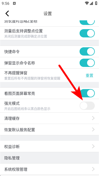 3、在設(shè)置界面中,找到強(qiáng)光模式的開(kāi)關(guān),點(diǎn)擊開(kāi)啟完成強(qiáng)光顯示的設(shè)置。