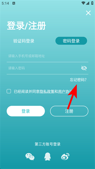 4、在界面點(diǎn)擊忘記密碼,按照后續(xù)提示操作,完成找回。