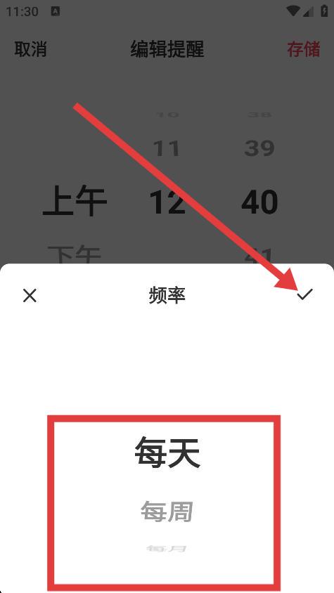 3、在編輯提醒界面中,找到并點(diǎn)擊頻率選項(xiàng)。
