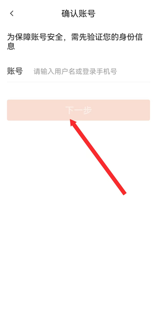 3、在確認(rèn)賬號(hào)頁(yè)面,輸入用戶名或登錄手機(jī)號(hào),點(diǎn)擊下一步。