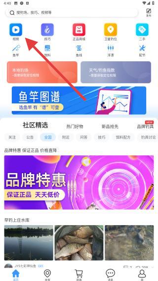 1、首頁(yè)導(dǎo)航觸發(fā):打開釣魚人APP,在首頁(yè)頂部導(dǎo)航欄,點(diǎn)擊視頻的圖標(biāo)相機(jī)樣式,進(jìn)入視頻專屬頁(yè)面。
