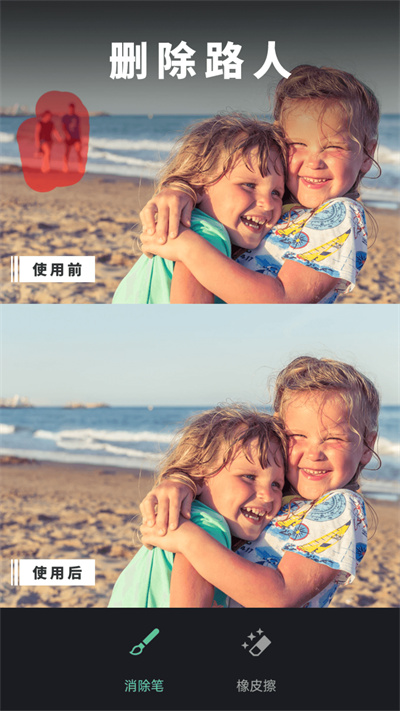 只需標(biāo)記圖片中不想要的物體,就能讓它們從中消失,觸摸細(xì)小瑕疵,永久刪除??焖傩迯?fù)美觀圖片。
