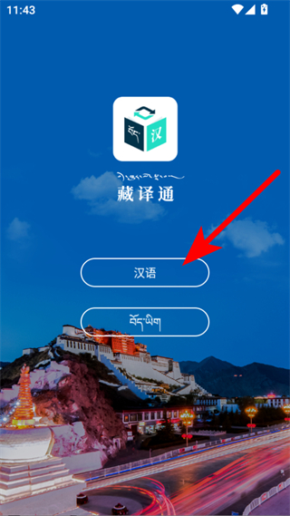 1、打開藏譯通APP,點(diǎn)擊漢語選項(xiàng),進(jìn)入翻譯操作界面。