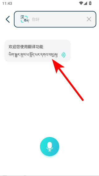 4、查看生成的藏語翻譯結(jié)果,還可點(diǎn)擊語音圖標(biāo)聽取藏語發(fā)音。
