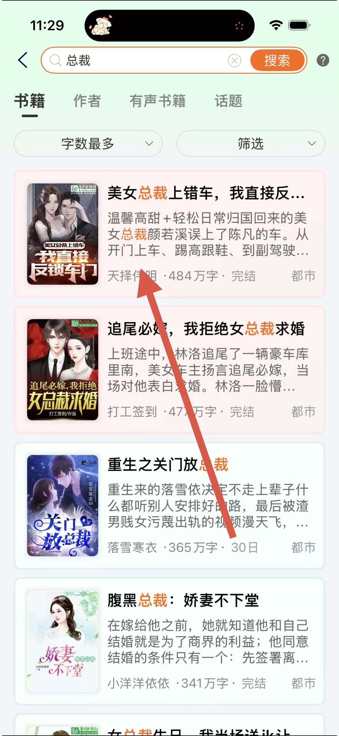 3、在搜索結(jié)果頁面中瀏覽小說列表,找到感興趣的小說,點(diǎn)擊進(jìn)入書籍詳情頁。