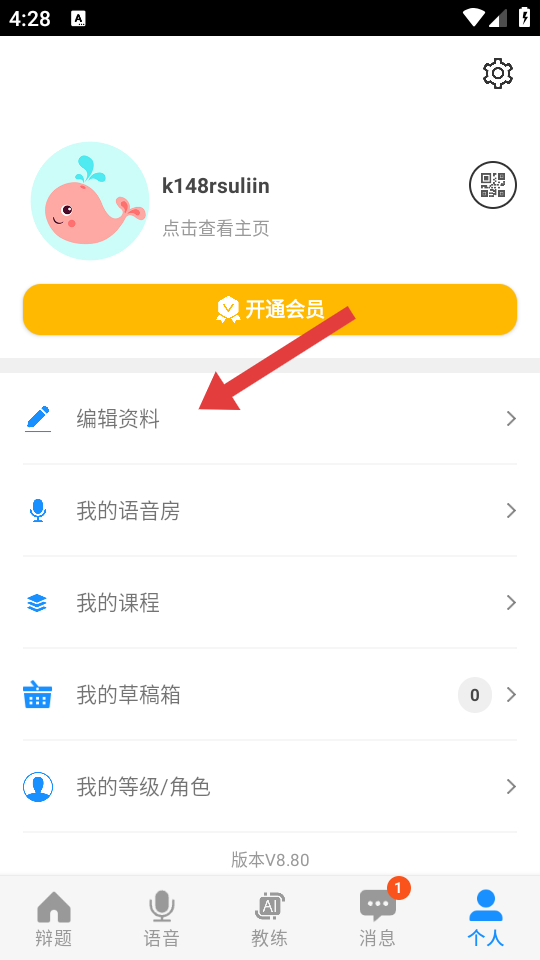 1、在個人的頁面,需要點(diǎn)擊編輯資料選項(xiàng),進(jìn)入資料編輯的界面。
