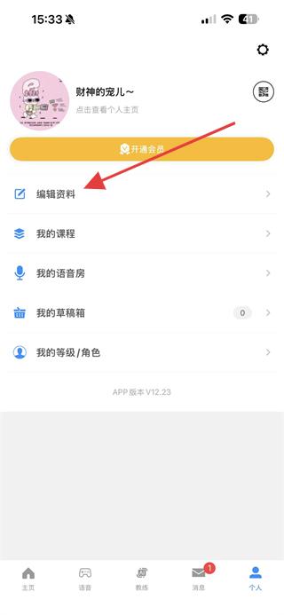 2、在個人頁面中找到編輯資料選項(xiàng)并點(diǎn)擊,進(jìn)入可編輯個人信息的頁面。