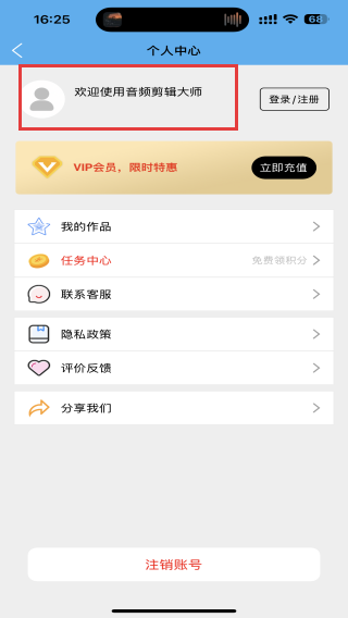 2、在個(gè)人中心頁(yè)面內(nèi),點(diǎn)擊正下方注銷賬號(hào)的按鈕。