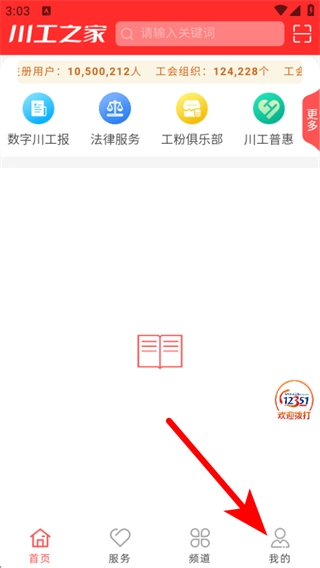 1、在川工之家的首頁,點擊底部我的,進入個人的頁面。