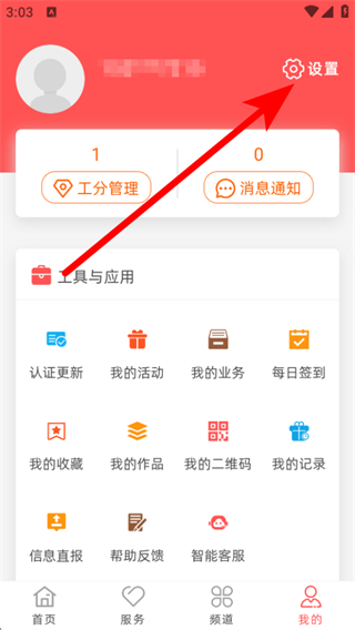 2、在個人的頁面,需要點擊右上角設置按鈕,進入設置的頁面。
