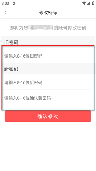 4、在頁面輸入新舊密碼后,點擊確認修改,完成密碼修改操作。